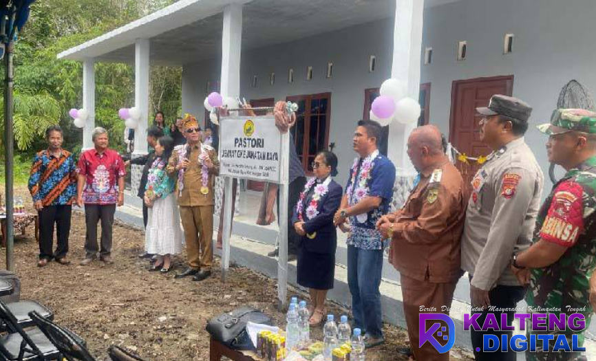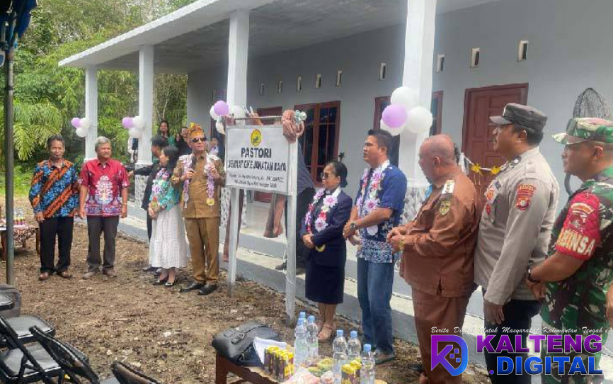 KUALA KURUN, Kalteng Digital – Bupati Gunung Mas, Jaya S Monong, meresmikan pastori Jemaat GKE Jakatan Raya di Kecamatan Rungan, Senin (6/4/2026).