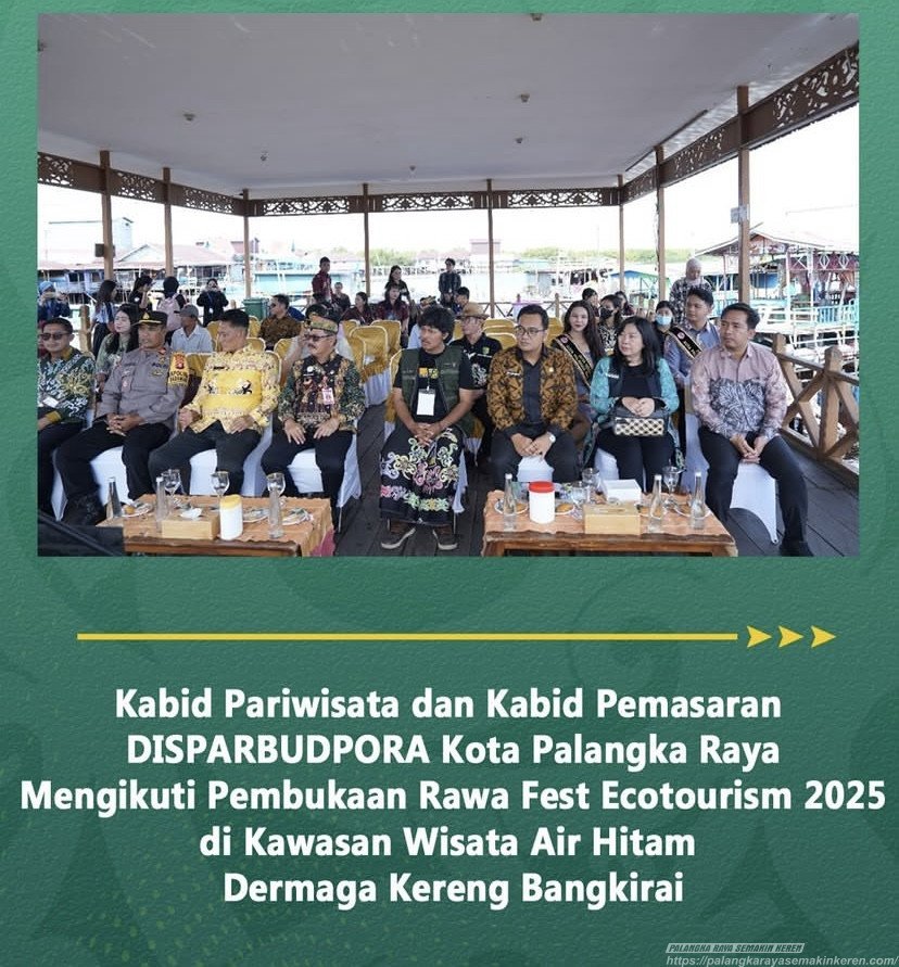 Palangka Raya Semakin Keren — Dinas Pariwisata, Kebudayaan, Kepemudaan, dan Olahraga (DISPARBUDPORA) Kota Palangka Raya melalui Kepala Bidang Pariwisata Alex Chandra, S.Sos., M.A.P. dan Kepala Bidang Pemasaran Cecilia Kristin Myra, S.P., M.M., menghadiri acara pembukaan Rawa Fest Ecotourism 2025 yang digelar di Kawasan Wisata Air Hitam, Dermaga Kereng Bangkirai.(Kamis,23/10/25)