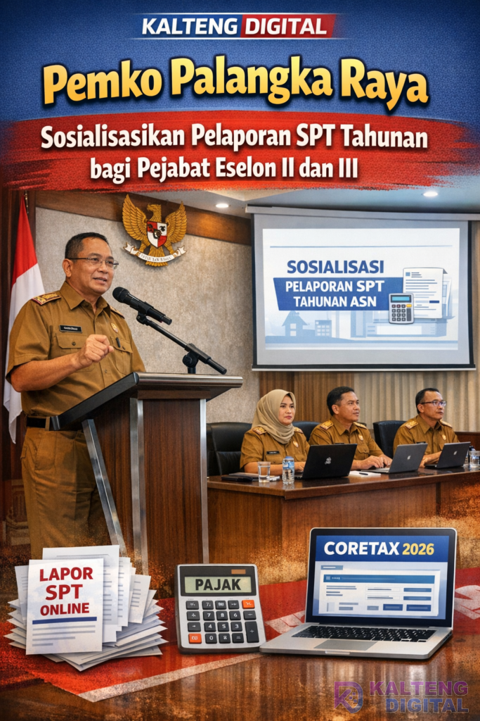 KALTENG DIGITAL – Pemerintah Kota Palangka Raya menggelar kegiatan sosialisasi sekaligus pendampingan pengisian Surat Pemberitahuan (SPT) Tahunan Pajak bagi pejabat eselon II dan III di lingkungan pemerintah kota. Kegiatan tersebut berlangsung di Aula Rumah Jabatan Wali Kota Palangka Raya, Kamis (19/2/2026).