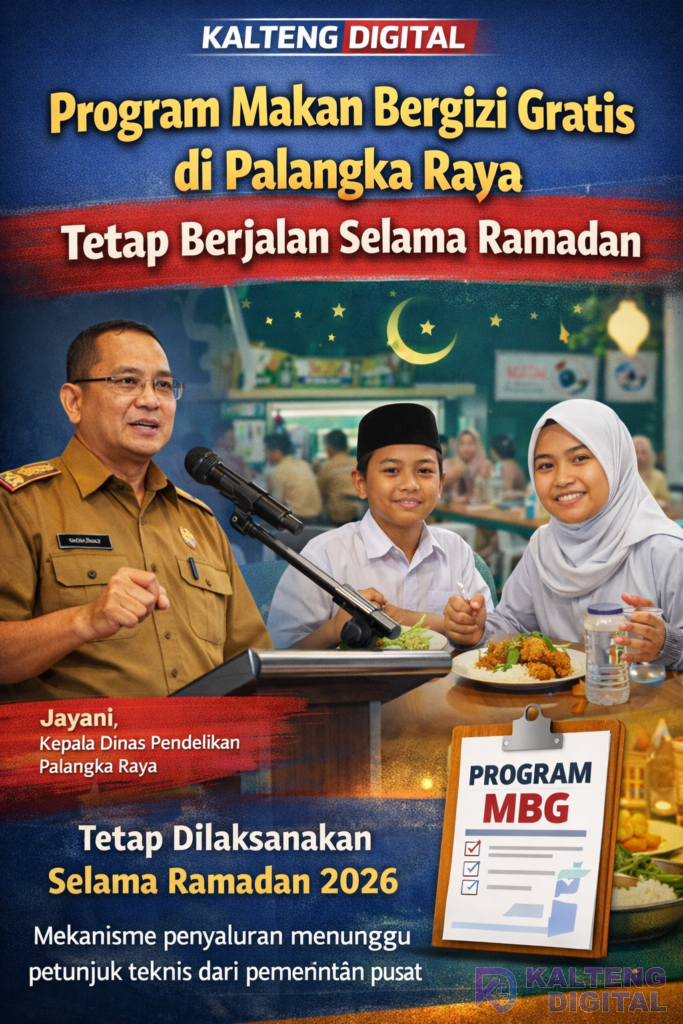 KALTENG DIGITAL – Program Makan Bergizi Gratis (MBG) di Kota Palangka Raya dipastikan tetap dilaksanakan selama bulan suci Ramadan 2026. Meski demikian, mekanisme pelaksanaannya masih menunggu petunjuk teknis resmi dari pemerintah pusat.